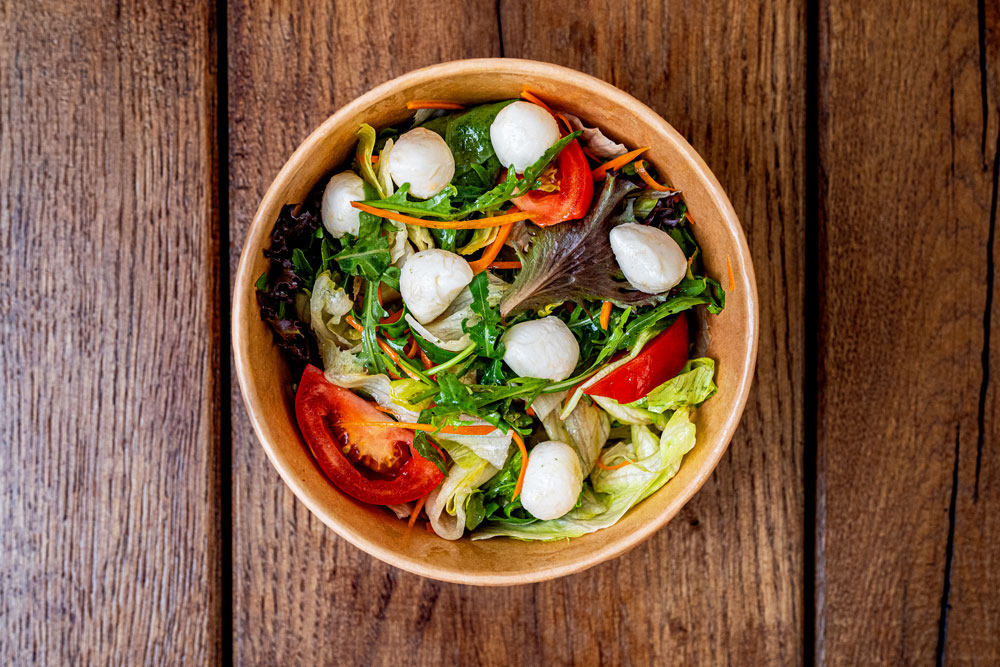 salátamix, paradicsom, reszelt répa, zellerszár, mozzarella golyók, olivaolajHúsmentes2290 Ft